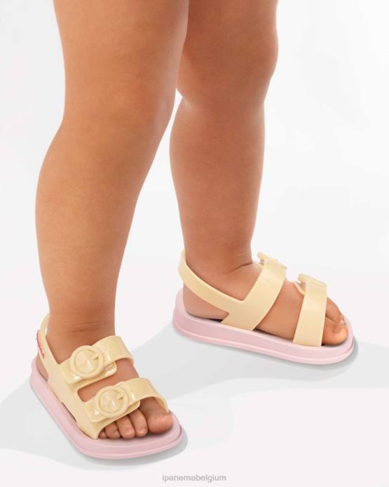 dit is een prachtige kleine sandaal van ipanema! de baby follow is voorzien van dikke bandjes, klittenbandsluiting – ideaal voor kleine handjes – en een heerlijk zachte, diepe zool onder de voet! Pastelkleuren maken dit prachtig relaxed – hier afgebeeld in citroen!