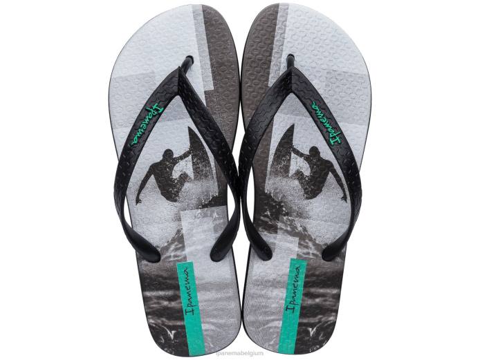 De zomerse teenslippers van ipanema zijn geïnspireerd op de Braziliaanse surfdagen. met comfortabele stringbandjes versierd met een discreet ipanema-logo en gecombineerd met coole surfprints op het voetbed. hier in het zwart te zien.