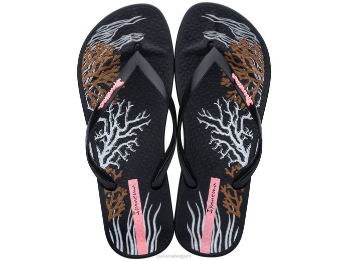 anatomisch rif. de perfecte match tussen comfort en stijl. geïnspireerd door de diepzeeriffen van de wereld, zullen deze je geest inspireren. met een prachtige rifprint op de zool en ipanema-logodetails op de riem. hier in het zwart te zien.