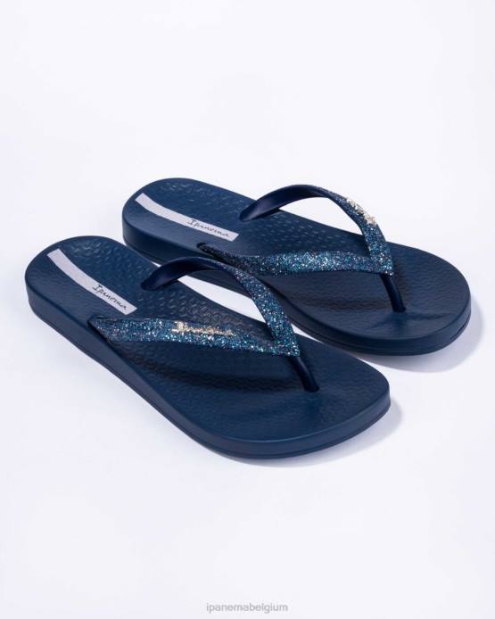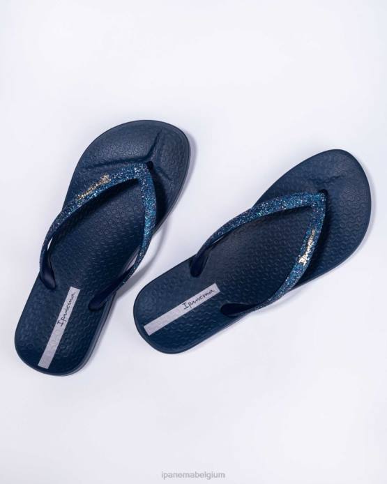 de lolita antwoordt degenen die vragen: hoe blits kan een eenvoudige slipper worden het klassieke voetbed is versierd met basic bandjes, maar de bandjes zijn voorzien van glinsterende glitters en het ipanema-logo valt echt op in geborsteld zilver. hier gezien in de marine.