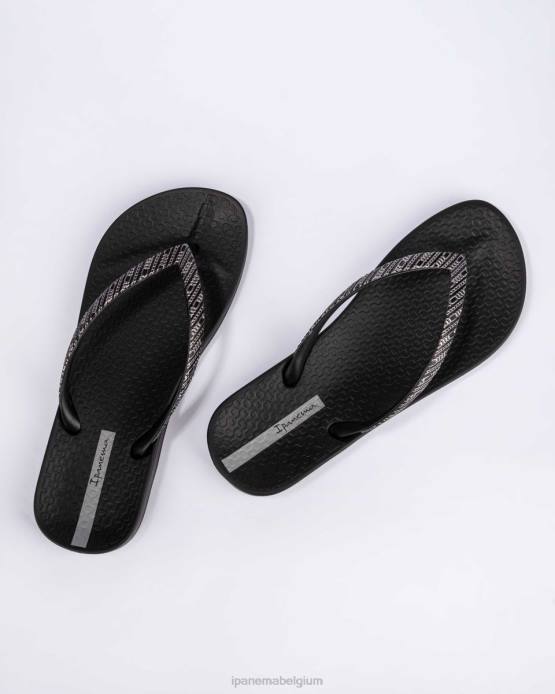 de klassieke ipanema teenslipper is een fijne basic voor de zomer! het anatomische voetbed zorgt voor extra ondersteuning en comfort aan de voet met de stevige basislaag. de eenvoudige blokkleur van deze zwarte teenslipper, met het contrasterende bedrukte bandje, is een musthave in je garderobe dit seizoen!