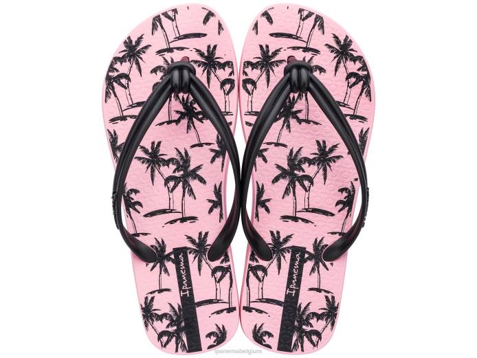 De elo-stijl van ipanema omvat stijl en comfort in één. de geweldige bandjes met touw- en knoopeffect gaan samen met coole handpalmafdrukken op het voetbed. hier te zien in zwart en roze.