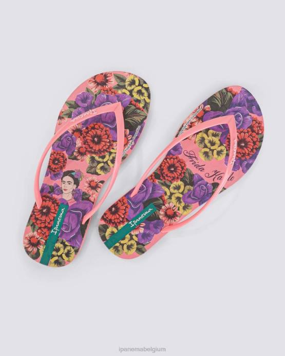 in de frida kahlo string verschijnt frida in kleur aan de linkerkant, met haar naam aan de rechterkant. de bloemen rondom haar maken plaats voor enkele bandjes die delicater zijn dan normaal, en met het ipanema-logo op de voorkant. zalmroze voelt gewoon zo goed aan voor dit ontwerp!