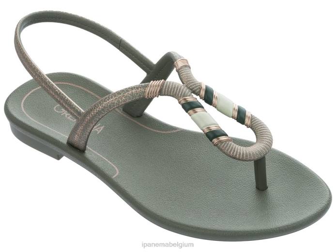 inspire sandaal, de perfecte sandaal voor dag en nacht. Met een stevige enkelband en ongewoon versierde touwachtige t-bar-bandjes, zal deze sandaal zeker de aandacht trekken van veel bewonderaars. hier gezien in salie.
