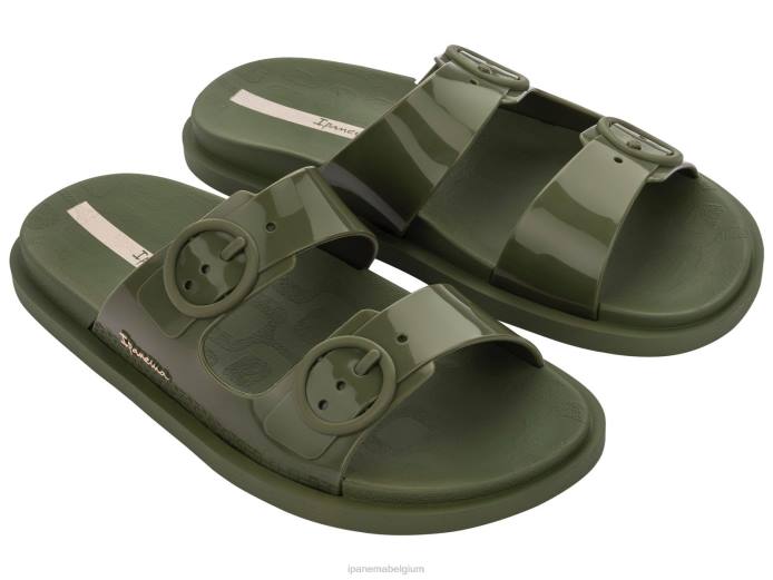 volg deze stijl en je bent op de goede weg! deze heerlijk relaxte stijl is ideaal om rond het zwembad te slenteren; de brede bandjes, met gesplijsten en een gouden ipanema-logo aan de zijkant, in combinatie met de holle binnenzool en iets bredere buitenzool zorgen voor een comfortabele, stevige pasvorm en zorgen ervoor dat lucht door de grote openingen kan circuleren – ziet er kool uit in kaki!