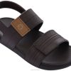 de dakar-sandaal voor kinderen heeft een heel volwassen uitstraling; een effen en eenvoudig ontwerp zonder gedoe – en klittenbandsluitingen voor een esthetische look! Hier afgebeeld in marineblauw, met bruine zool.