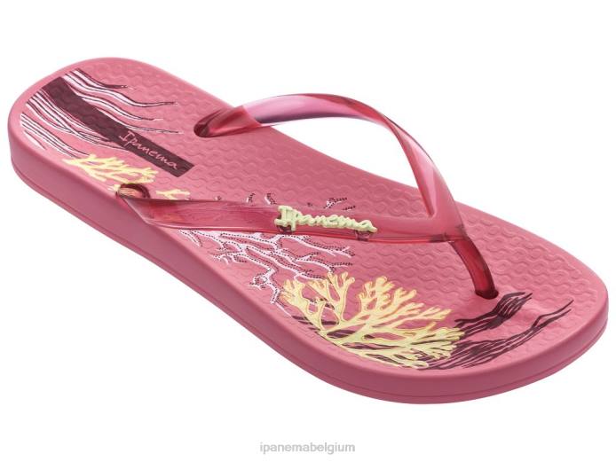 anatomisch rif. de perfecte match tussen comfort en stijl. geïnspireerd door de diepzeeriffen van de wereld, zullen deze je geest inspireren. met een prachtige rifprint op de zool en ipanema-logodetails op de riem. hier te zien in roze trans.