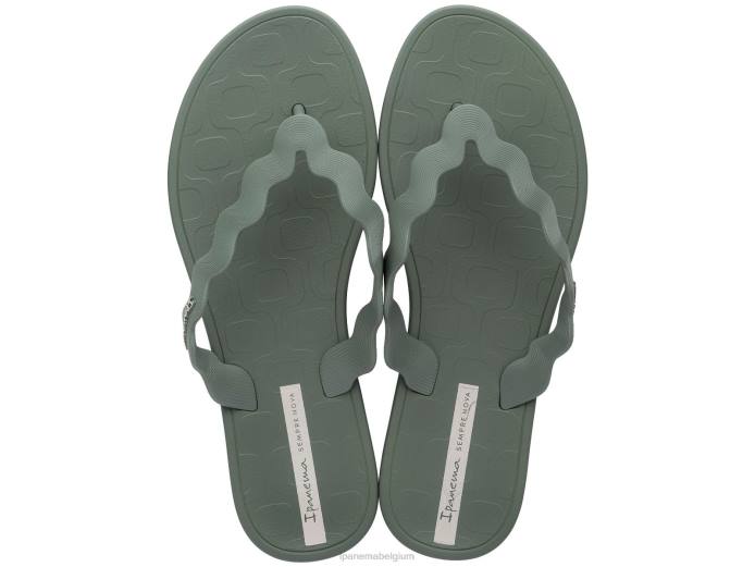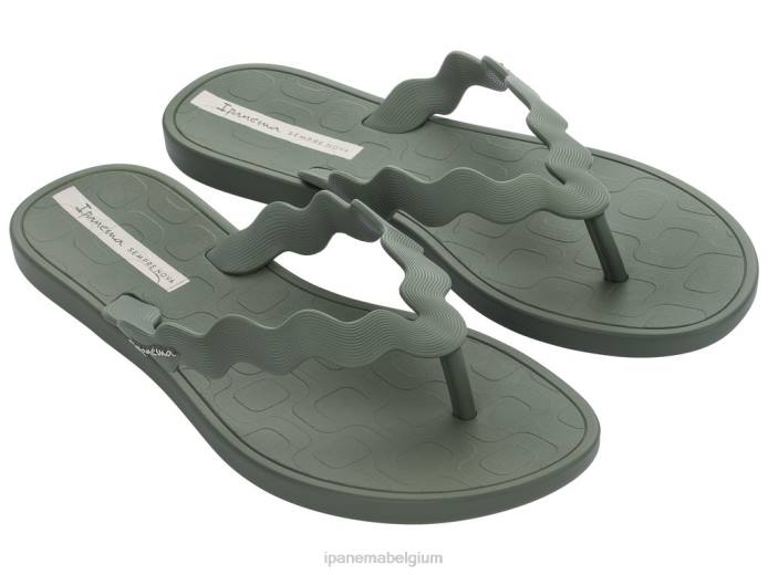 De zig van ipanema is een supercoole teenslipper. met een geweldig bandje met zigzageffect en een gewatteerd voetbed met ipanema-reliëf en een discreet ipanema-logo op de band. hier gezien in salie.